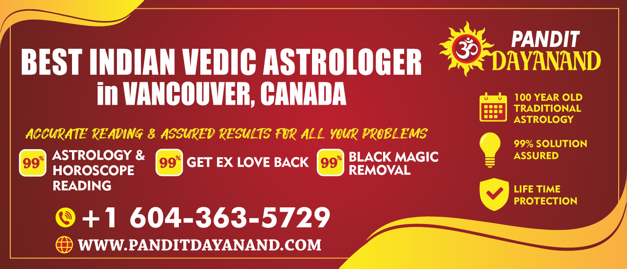 Astrology is one concept which has been in use since generations to ease the problems of people. Vedic astrology has been used intensively to read the horoscopes of people and analyze the birth charts to examine the position of the stars and planets. Astrology has been healing people since years in matters related to personal life and professional life in addition to love life. To get rid of your astrological problems in your life, career, business you can consult with Pandith Dayanand, a well known spiritual healer, reputed Indian astrologer in Vancover ,Canada. He is love psychic medium reading expert one of best love psychic medium reader in Vancover ,Canada who provides you top solutions for love problems, astrological problems.